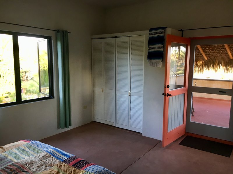 Hear the waves at night. Walk to an uncrowded, untamed beach in 5 minutes. Feel the sea breeze and take in sweeping views of mountains, lush farmland, sunset, glimpse of the ocean and starry night skies from a rooftop deck. Buy locally grown, organic produce close by. Enjoy the quiet that comes with a prime location in Todos Santos’s safe, sought-after La Cachora neighborhood.