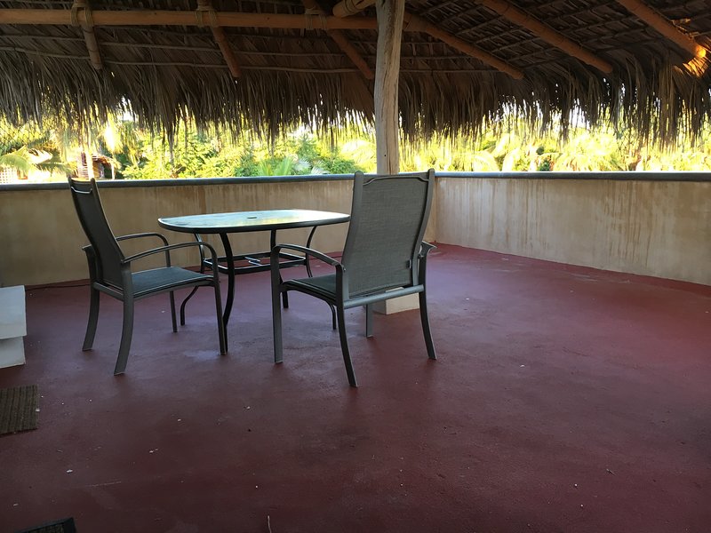 The second bedroom/bathroom is upstairs and reached by an outdoor stairway and has its own palapa-shaded sitting area and kitchenette. Further upstairs is the viewing deck. Casa Solana’s design is ideal for parents traveling with teenagers who want their own “space” upstairs.