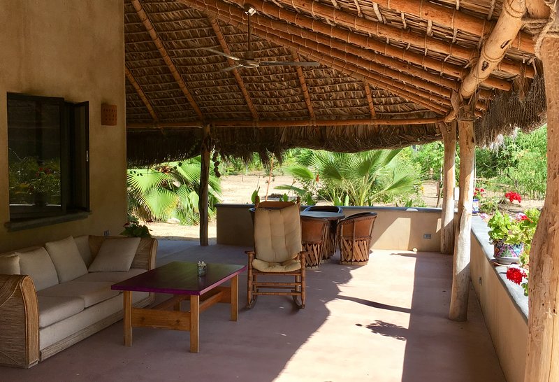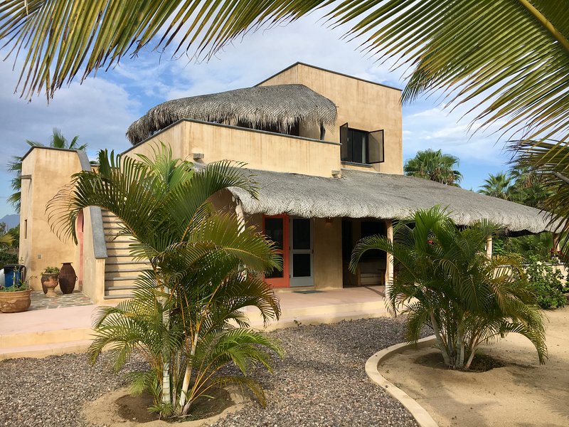 Casa Solana is a modern, well-built 2-bedroom, 2-bathroom Baja home on its own lush, gated, gardener-tended 1,000-square-meter (quarter-acre) lot graced with flowering, tropical plants. It’s a perfect home base to explore nearby “Pueblo Magico” Todos Santos, with its many festivals, artisan shops, art galleries, fine restaurants and taco stands, and that innumerable tourist attractions throughout sunny Baja California Sur.
