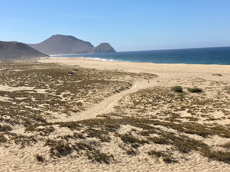 Local activities include swimming, sea kayaking, horseback riding and hiking. Protected swimming beaches are within 20 minutes by car, including surf spots at Cerritos (surf lessons available, Mario Surf School), San Pedrito, Las Palmas or La Pastora beaches. The local Sierra de la Laguna mountains, which rise to more than 6,800 feet (2090 meters) and include a Biosphere Reserve, offer hiking, backpacking and hot springs. La Paz, an hour away, offers opportunities to swim with seals or whale sharks in the gorgeous Sea of Cortez; in Los Cabos, also about an hour away, snorkeling, sea kayaking and surfing are possible.