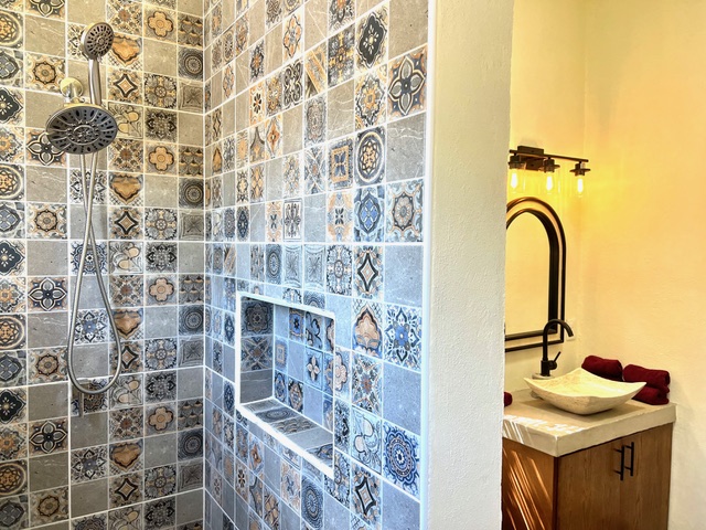 - Outside shower and laundry area.